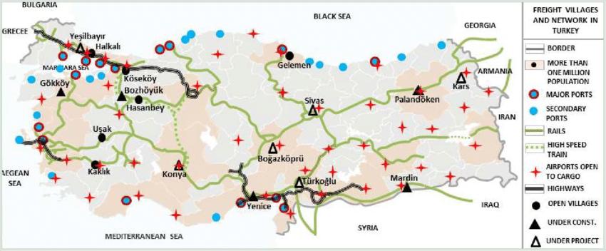 Aufgrund ihrer einzigartigen geografischen Lage ist die Verbesserung des Transportwesens eine Priorität für die wirtschaftliche und soziale Entwicklung der Türkei. In den letzten Jahren hat die Türkei erhebliche Investitionen getätigt und gesetzliche Regelungen getroffen, um den nationalen und internationalen Transport zu verbessern und zu diversifizieren. Der Luftverkehr ist ein grundlegender Bestandteil des türkischen Tourismus, da er die entscheidende Verbindung zwischen den touristischen Gebieten und den Reisezielen in der Türkei darstellt, wie Sie auf der Transportkarte der Türkei sehen können. Im Jahr 2010 bevorzugten 68,3 Prozent der in der Türkei ankommenden Ausländer den Luftverkehr als Transportmittel. Seit den 1950er Jahren hat der Straßenverkehr einen bedeutenden Entwicklungsprozess durchlaufen und wird heute als das dominierende Verkehrsmittel der Türkei angesehen.